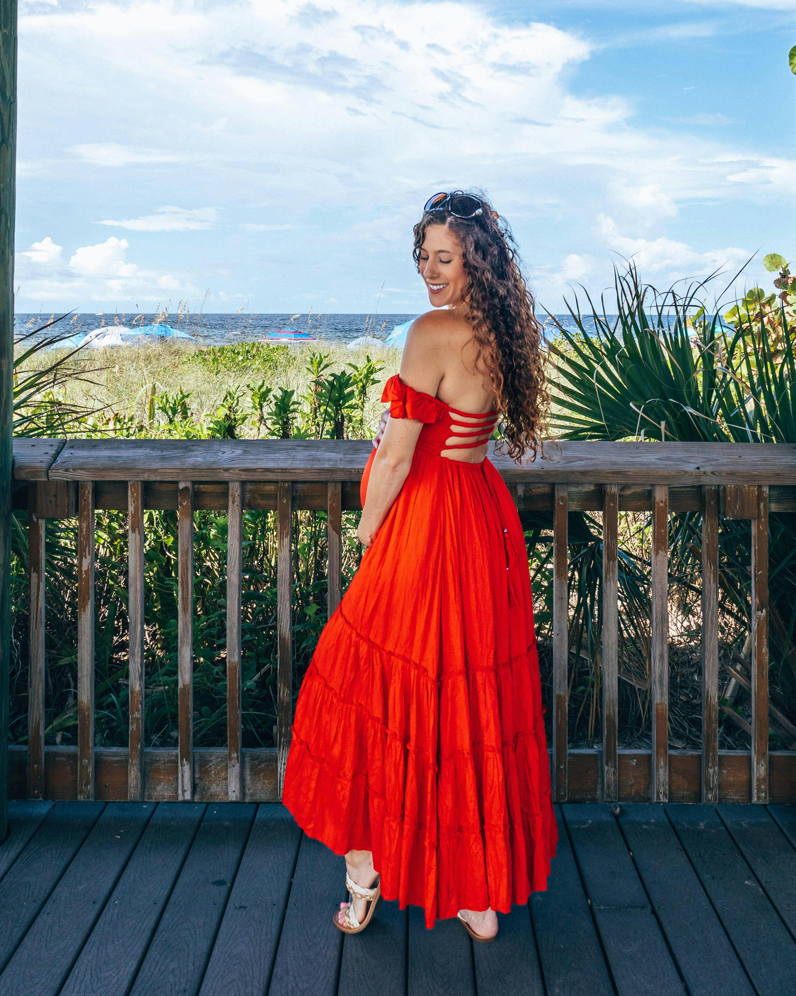 I have this beautiful dress in red! It is perfect for holiday photos and vacations! I love the pretty details and flowy design! :)